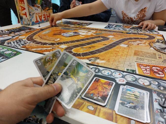 Een zalige nachtrust, een deugddoende douche en een overheerlijk ontbijt kondigden veel goeds aan en zo geschiedde. Er werd stevig gestapt, ontdekt en ook gespeeld. Starship Captains en Heat zouden zeker meekomen naar België. Voor de eerste lukte dit, maar de laatste was al uitverkocht binnen de 90 minuten na de start van de beurs. Balen, maar ondertussen schafte Dimitri het spel aan via Oberonn, dé spellenwinkel van Hasselt.
