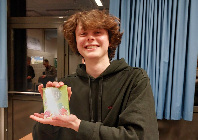 De laatste verrassing van de avond viel te beleven aan onze Dubbel Dobbel kassa. De allereerste keer toen we met het systeem van onze drankkaarten en de bijhorende winstkans met de dobbelstenen werkten, ging Aaron meteen met een prijs naar huis. Daarna gebeurde dit echter niet meer. Ook niet zo onlogisch natuurlijk met een winstkans van 1 op 60. Maar aangezien april de avond van de verrassingen was, kon een nieuwe winnaar ook hier niet ontbreken. Flor was de gelukkige van dienst. Hij ging met een gratis exemplaar van Point Salad naar huis!